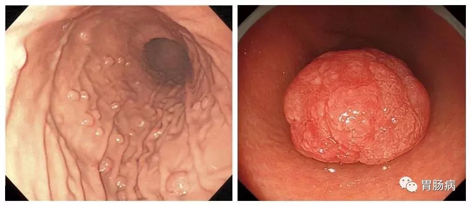 約占胃息肉的10%~25%,癌變率高,可達(dá)30%~58.3%,尤其瘤體較大(>2cm的廣基息肉)、絨毛狀腺瘤、伴異型增生者惡變率更高。